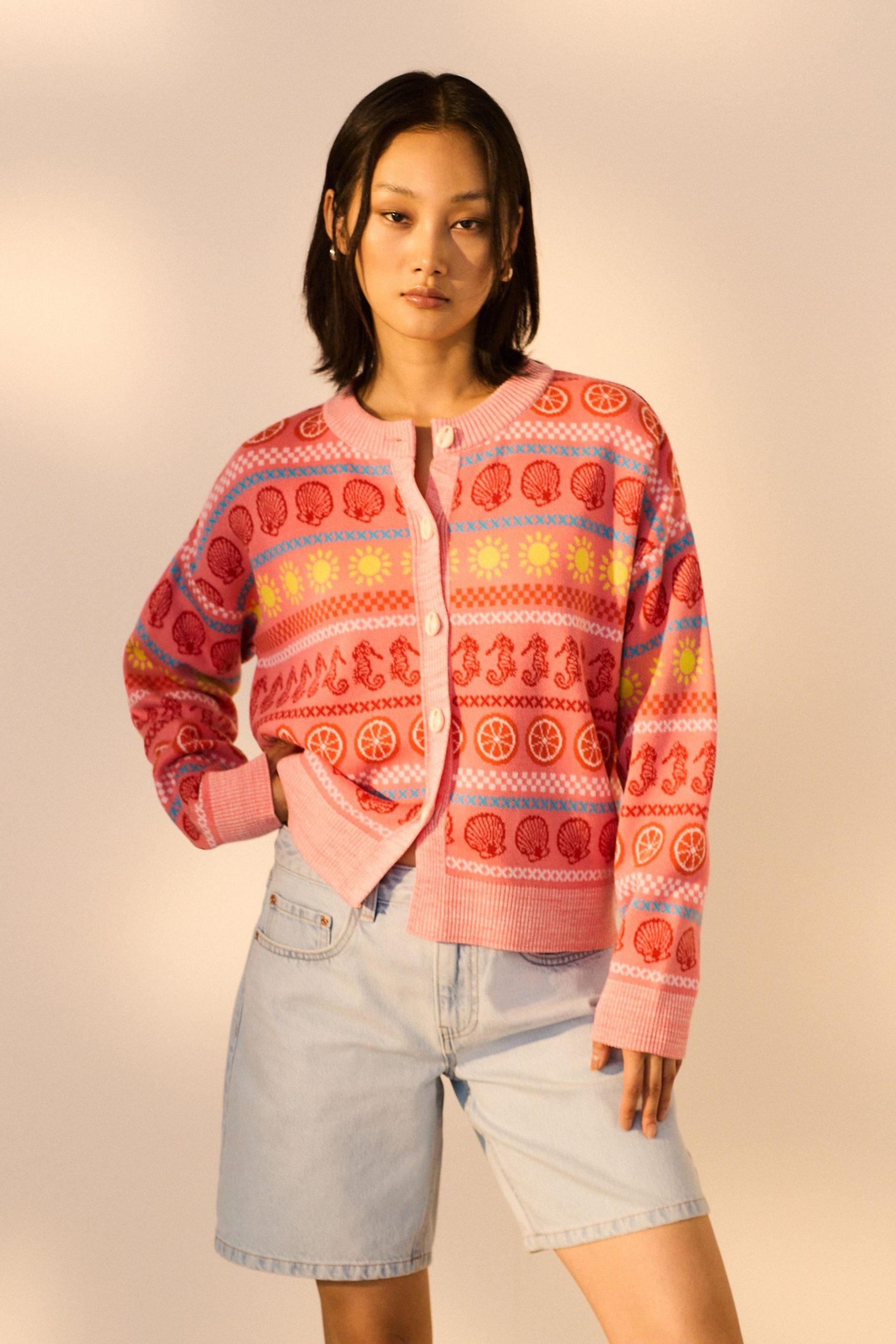 Next Strickjacke Bunte Strickjacke mit Meeresmuster (1 tlg)