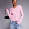 ASOS DESIGN – Strickjacke in Rosa mit Ziernähten im Deckenstil | ASOS