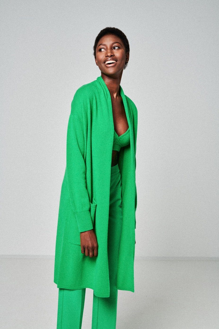 Herzensangelegenheit Longstrickjacke Strickjacke grün mit Gürtel Wird mit passendem Gürtel geliefert
