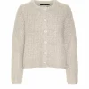 Vero Moda – Jacke aus breit geripptem Strick in Creme mit Knopfleiste