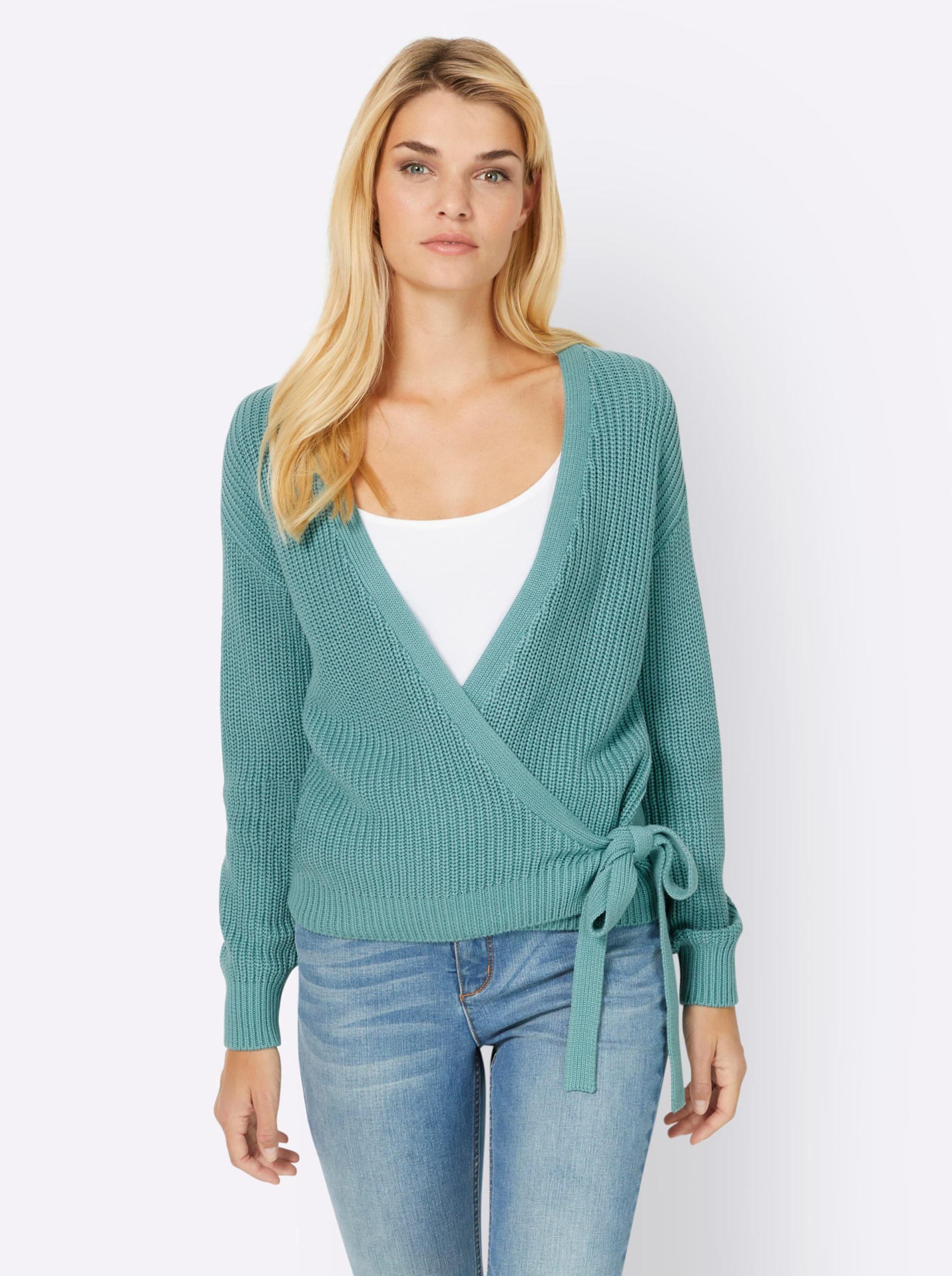 heine Wickelstrickjacke mit V Ausschnitt in ozean | heine
